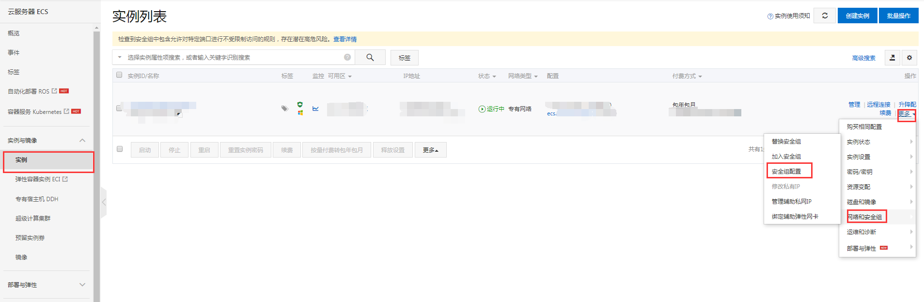 在实际工作中,我们会用到各种端口,常用的一些端口,比如80、3306、443、22、20等,今天就说一下,如何查看并开启这些端口,在开启端口之前,你首先要到服务器中配置安全组,阿里云ecs配置如下: